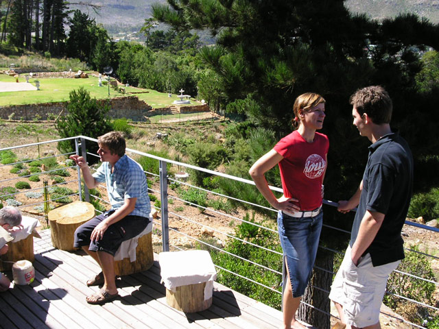 Sandra (H. jetzt T.) musste noch ein paar Besorgungen machen,unter anderem mußten die Blumen und der Torbogen für die Trauung abgeholt werden und so fuhr Sie mit Sandra B. zu einigen Shops in Richtung Constantia während Stefan, Klaus und ich nach Capetown fuhren, um auch dort noch ein paar Dinge zu besorgen. Auf dem Rückweg fuhren wir nochmals nach Camps Bay, um etwas Sand vom Strand für die Aschenbecher zu holen. Anschliessend setzten wir uns in eines der vielen kleinen Strand Cafes und tranken einen Kaffee/Wasser/Savannah.