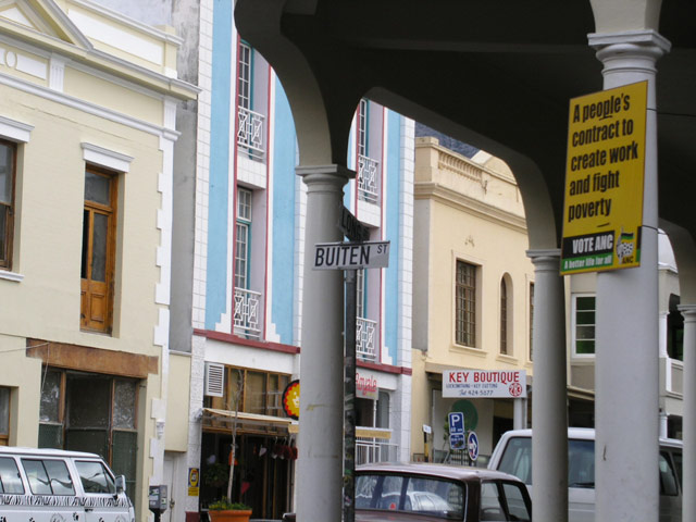 Nach dem Frühstück gab es (leider) erstmal ein bisschen Arbeit für uns. Nach zahlreichen Ermahnungen und Fragen wegen der neuen Afrika-Seite hatten wir heute das Tagesprogramm abgelehnt und uns erfolgreich mit der Fertigstellung unseres Tagesbuches beschäftigt. Der Rest der Truppe war schon nach Kapstadt gefahren, um den Green- und den Church Market zu besuchen. Wir fummelten noch ein wenig an der Fertigstellung unseres Tagebuches herum und gegen knapp 14:00 Uhr schafften wir endlich den Absprung.
