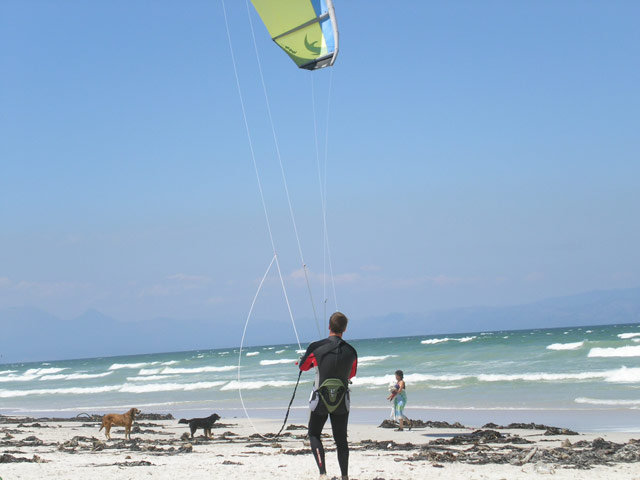 In Muizenberg am Strand versuchten wir erneut, Kontakt mit den anderen aufzunehmen, doch auch diesmal leider ohne Erfolg. Somit legten Stefan, Brownie und ich uns dann alleine an den wirklich superlangen und leider etwas veralgten Strand. Wir entspannten, lasen, dösten und sahen den Kitesurfern bei Ihren Wasserspielen zu. Brownie und ich machten zwischendurch einen Spaziergang am Strand und sammelten ein paar Muscheln. Nach unserer Rückkehr wagte Stefan sich dann für ein paar Minütchen ins Meer. Anschliessend gab er uns ein Eis aus, was man auf Grund der Temperaturen extrem schnell wegschleckern muss, weil es einem ansonsten einfach an der Hand herunterschmilzt.