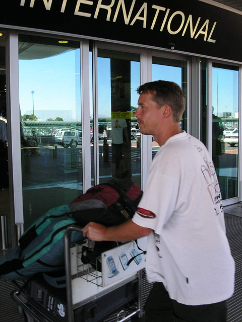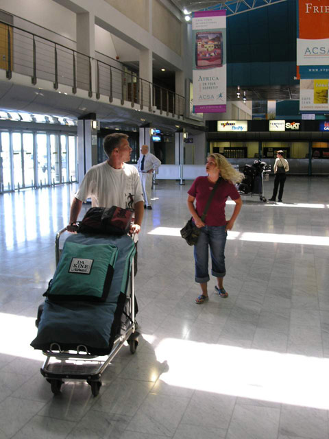 Später, so gegen Mittag, suchten die "Jungs" unter Rudi's Führung mit der Wünschelroute unten im Garten nach Wasser. Schliesslich war es dann soweit, dass wir Stefan zum Flughafen bringen mussten. Wir beluden den Avis-Golf, es gab einen kurzen Abschied (wer macht sowas schon gerne?!) uns los ging es in Richtung Cape Town International Airport. Dort angekommen, brachten wir Stefan bis zur Abflugshalle... ):