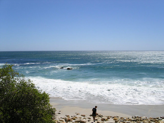 Sandra (H. jetzt T.) musste noch ein paar Besorgungen machen,unter anderem mußten die Blumen und der Torbogen für die Trauung abgeholt werden und so fuhr Sie mit Sandra B. zu einigen Shops in Richtung Constantia während Stefan, Klaus und ich nach Capetown fuhren, um auch dort noch ein paar Dinge zu besorgen. Auf dem Rückweg fuhren wir nochmals nach Camps Bay, um etwas Sand vom Strand für die Aschenbecher zu holen. Anschliessend setzten wir uns in eines der vielen kleinen Strand Cafes und tranken einen Kaffee/Wasser/Savannah.