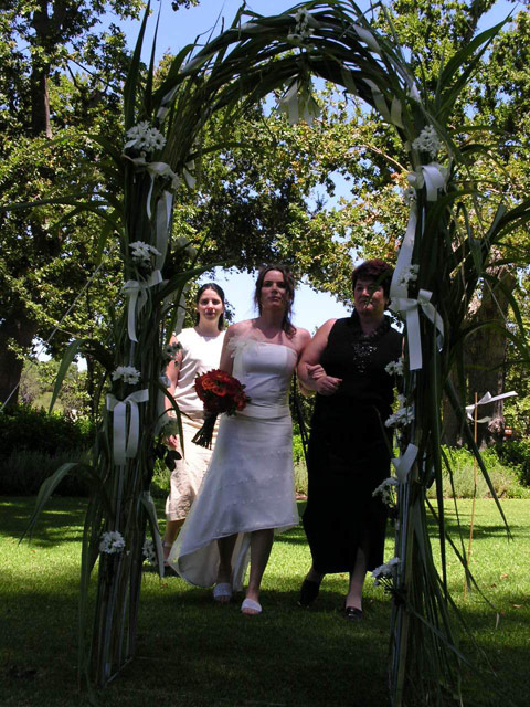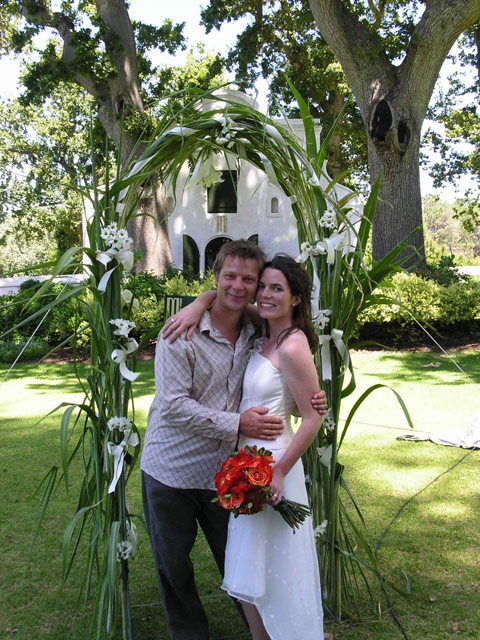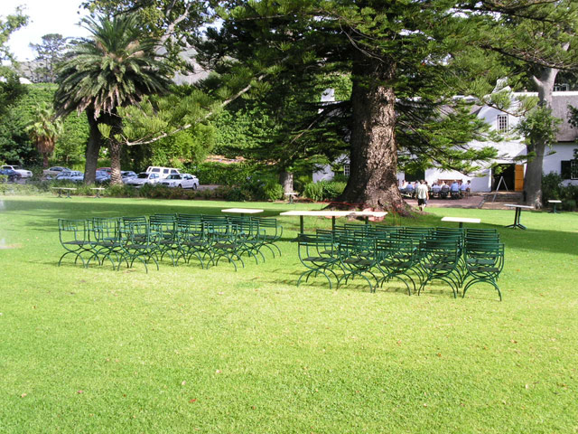 Auf dem Weingut angekommen, stellten wir den Torbogen auf. Anschliessend fuhren wir in die Mall in Constantia, weil wir noch weisse Tischdecken für die Hochzeitstafeln kaufen mussten... da die Catering-Firma, die die Hochzeit ausrichten sollte, sehr zur Freude der Braut nur schwarze Tischdecken angeliefert hatte... für eine Hochzeit... is klar...