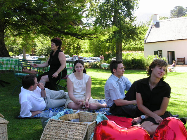 Nach dem Frühstück *auakopf* luden wir den fertig geschmückten Torbogen auf Klausi's Toyota und fuhren mit Wolfgang, Stefan, Klaus und mir los in Richtung des Weingutes "Buitenverwachting", wo die Hochzeitsfeierlichkeiten stattfinden sollten.