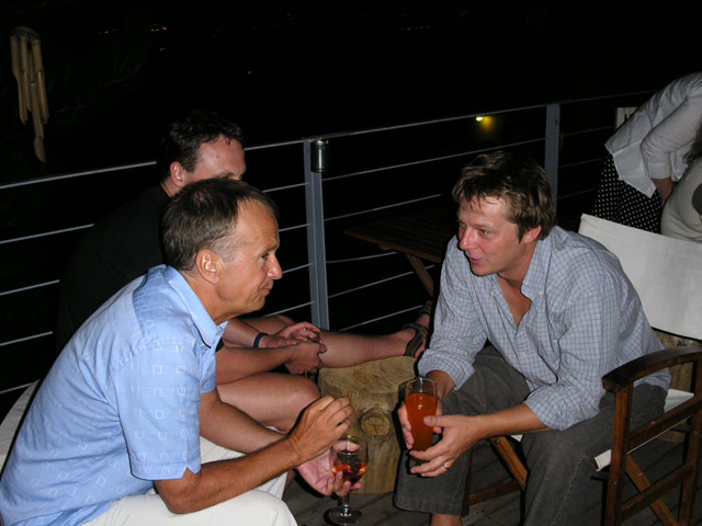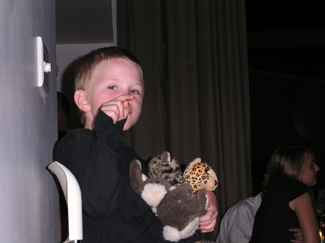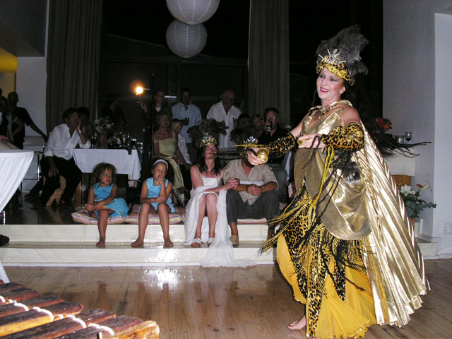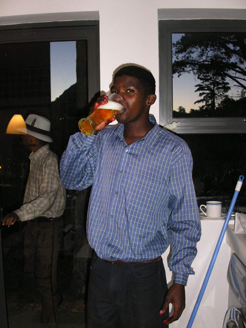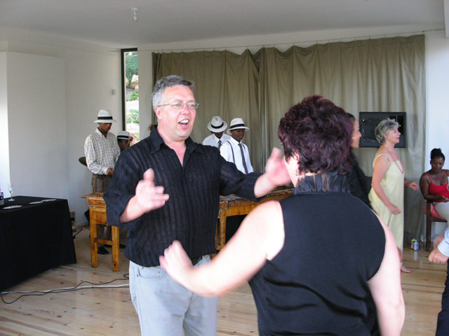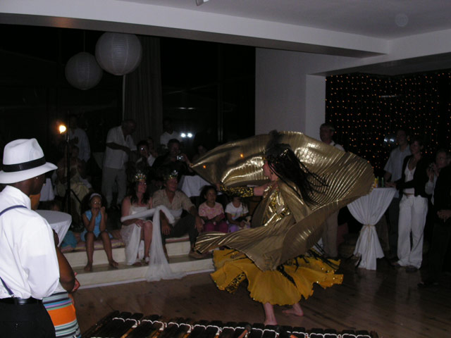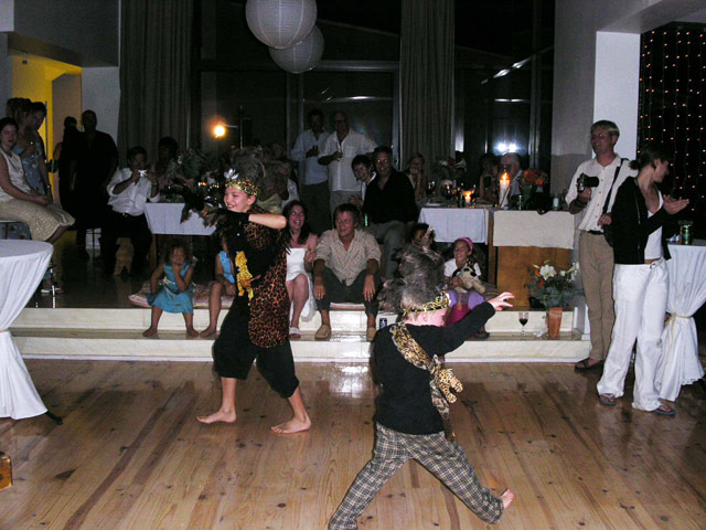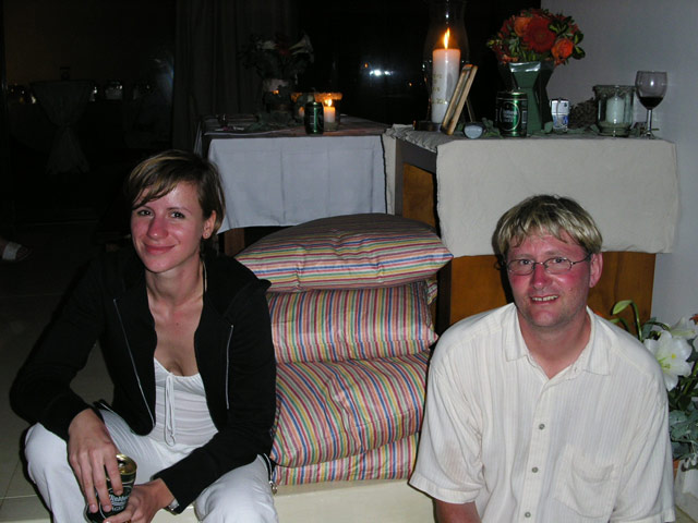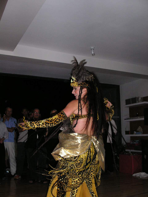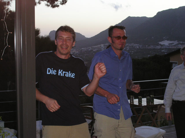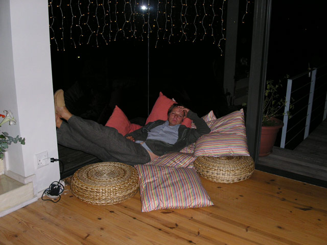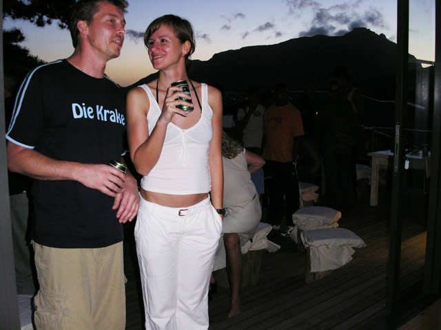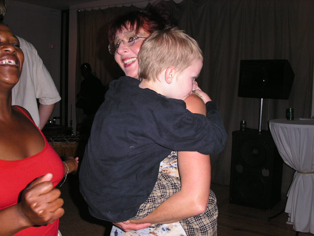 Die afrikanische Band rockte das Haus, im wahrsten Sinne des Wortes. Alles tanzte... und wie, gell Doris? (; Das Haus füllte sich immer mehr mit Gästen, die sich alle Mühe gaben, den Anlass des Tages ausgiebig und gebührend zu feiern. Alle hatten masslos Spaß. Gehen ca. 21:30 Uhr gab es dann sehr leckeres Essen, u.a. mehrere Sorten Fleisch und Chicken, diverse Obst- und Gemüsepfannen und später noch sehr schmackhafte Süßspeisen. Das Abendprogramm wurde weiterhin durch den Auftritt von Hayat (Klausi's Schwester) abgerundet, die mit ihrem beiden Söhnen Oscar und Carlo mehrere eindrucksvolle Bauchtanz-Stücke präsentierte. Gegen ca. 23:30 Uhr verliess die mittlerweile stark alkoholisierte Band das Haus (es scheint eine südafrikanische Unart zu sein, Parties (aus europäischer Sicht) viel zu früh zu verlassen), eine halbe Stunde später packte auch DJ Too Late seine CDs und Technik zusammen. Mittlerweile war die Zahl der Gäste auf den harten Kern zusammengeschrumpft, was aber die Stimmung in keinster Weise negativ beeinflusste. Auch Rudi, unser ältestes Partymitglied rockte wie wild und präsentierte zusammen mit Carlo kleine Breakdance-Einlagen. Nach und nach entschwanden schliesslich die Gäste, bis gegen ca. 04:00 Uhr nur noch Claudia, Stefan, Alex und ich übrig waren, noch ein letztes Bierchen tranken und dann auch endlich in die Koje fielen.