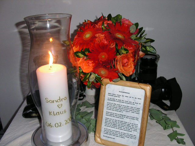 Dieser Tag begann für alle recht früh. Schon um ca. 09:00 Uhr waren die meisten auf und frühstückten. Die, die gestern Abend noch bis 03:00 Uhr an der Flasche gehangen hatten, hatten zwar etwas Anlaufschwierigkeiten und Bedenken, den anstehenden Tag zu meistern, doch alles sollte gut werden. Zu diesem Zeitpunkt war ja noch nicht abzusehen, dass der Hochzeitstag eine Steigerung um das Vielfache des vorherigen Abends werden sollte...