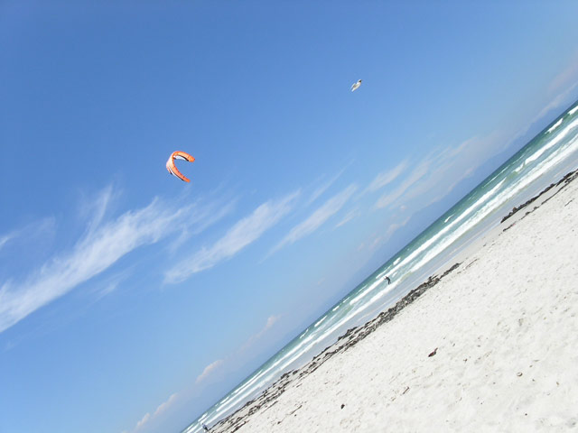 In Muizenberg am Strand versuchten wir erneut, Kontakt mit den anderen aufzunehmen, doch auch diesmal leider ohne Erfolg. Somit legten Stefan, Brownie und ich uns dann alleine an den wirklich superlangen und leider etwas veralgten Strand. Wir entspannten, lasen, dösten und sahen den Kitesurfern bei Ihren Wasserspielen zu. Brownie und ich machten zwischendurch einen Spaziergang am Strand und sammelten ein paar Muscheln. Nach unserer Rückkehr wagte Stefan sich dann für ein paar Minütchen ins Meer. Anschliessend gab er uns ein Eis aus, was man auf Grund der Temperaturen extrem schnell wegschleckern muss, weil es einem ansonsten einfach an der Hand herunterschmilzt.