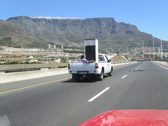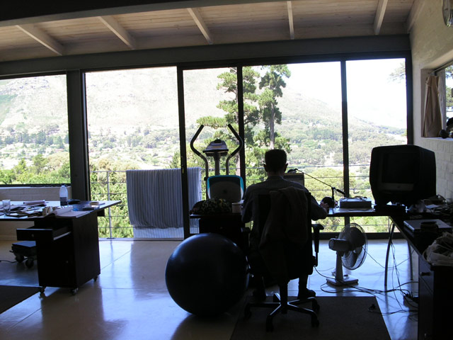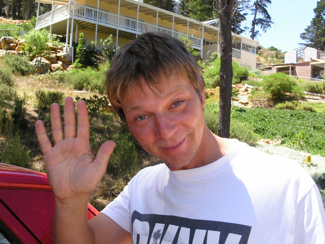 Später, so gegen Mittag, suchten die "Jungs" unter Rudi's Führung mit der Wünschelroute unten im Garten nach Wasser. Schliesslich war es dann soweit, dass wir Stefan zum Flughafen bringen mussten. Wir beluden den Avis-Golf, es gab einen kurzen Abschied (wer macht sowas schon gerne?!) uns los ging es in Richtung Cape Town International Airport. Dort angekommen, brachten wir Stefan bis zur Abflugshalle... ):